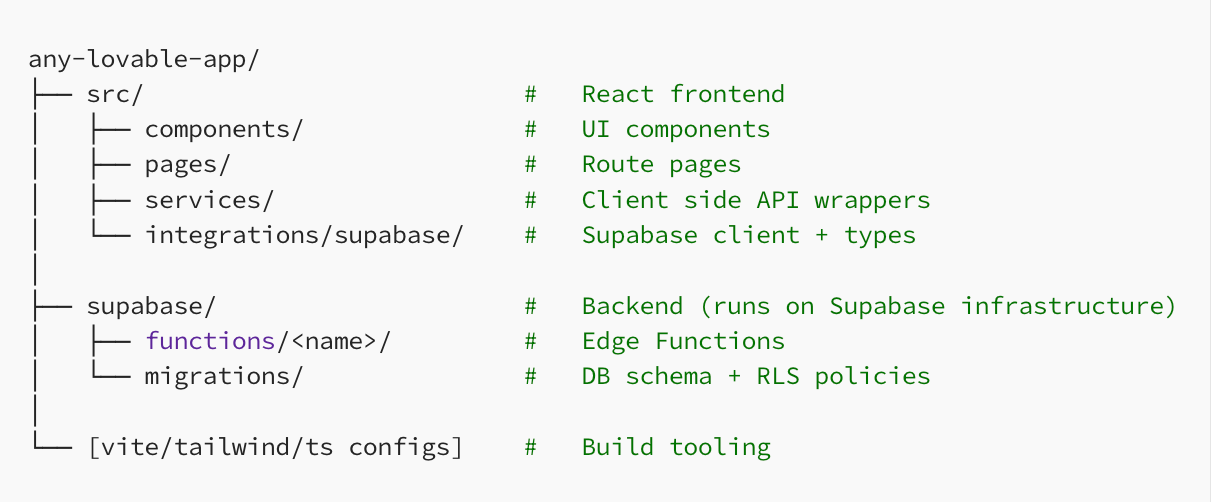 Lovable makes it possible to go from idea to working application in minutes by generating a full frontend and wiring it directly to a Supabase backend. This speed enables rapid prototyping and early validation, but also introduces architectural trade-offs once these applications move beyond experimentation.